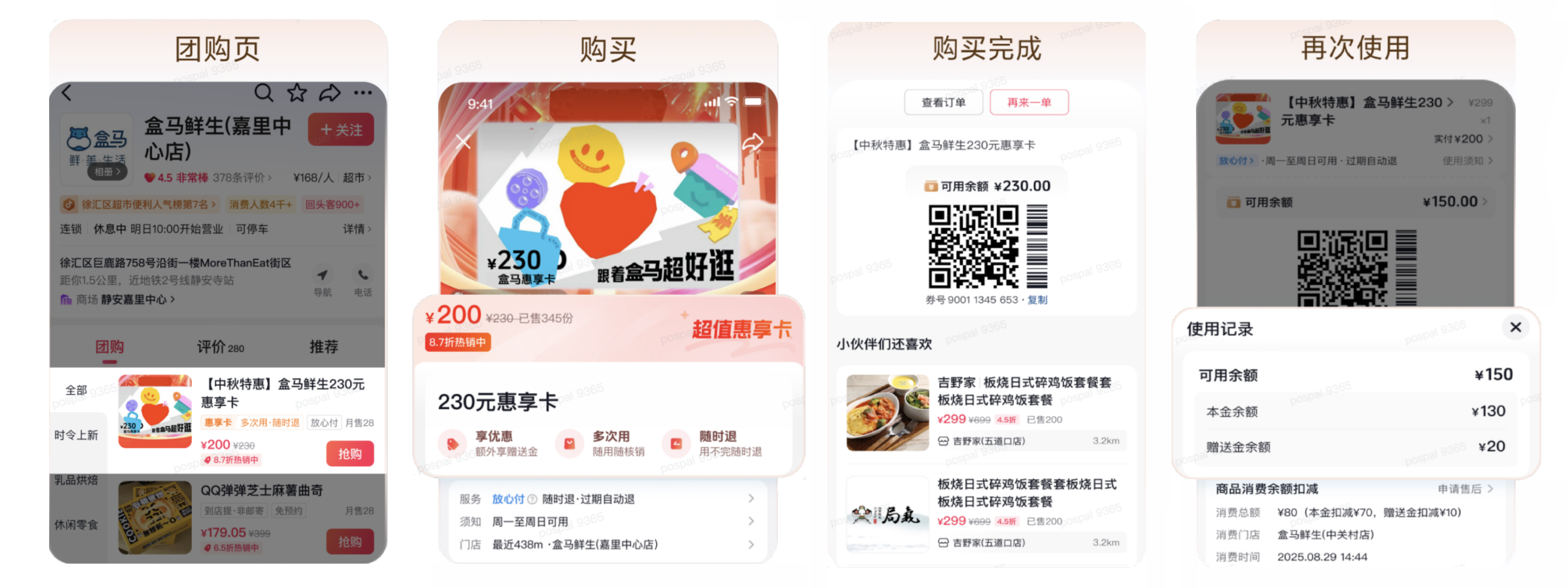 用户购买后会获得一个专属核销码,到店消费时出示给商家,商家通过扫码枪扫码后输入消费金额,系统自动