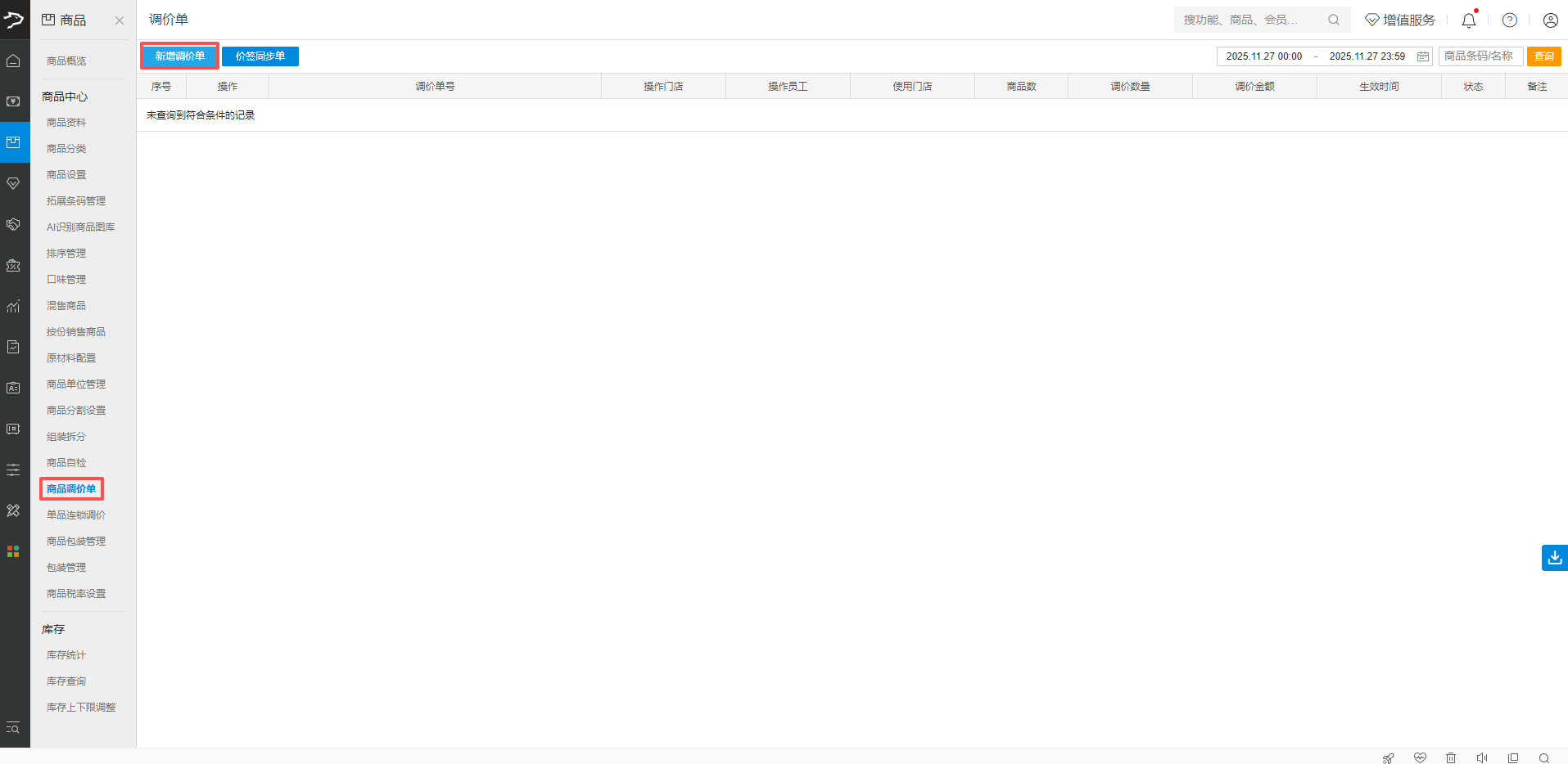 登录银豹官网云后台-【商品】-【调价单】-新增调价单